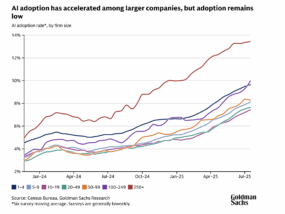 AI also continues to move beyond a market narrative and into a broader economic driver. While its near-term impact is difficult to quantify, longer-term adoption trends point toward meaningful productivity gains over time. Adoption remains concentrated among larger companies, indicating there is still room for expansion across the broader economy as this cycle develops.